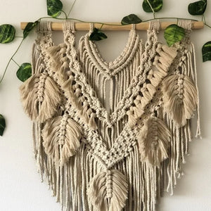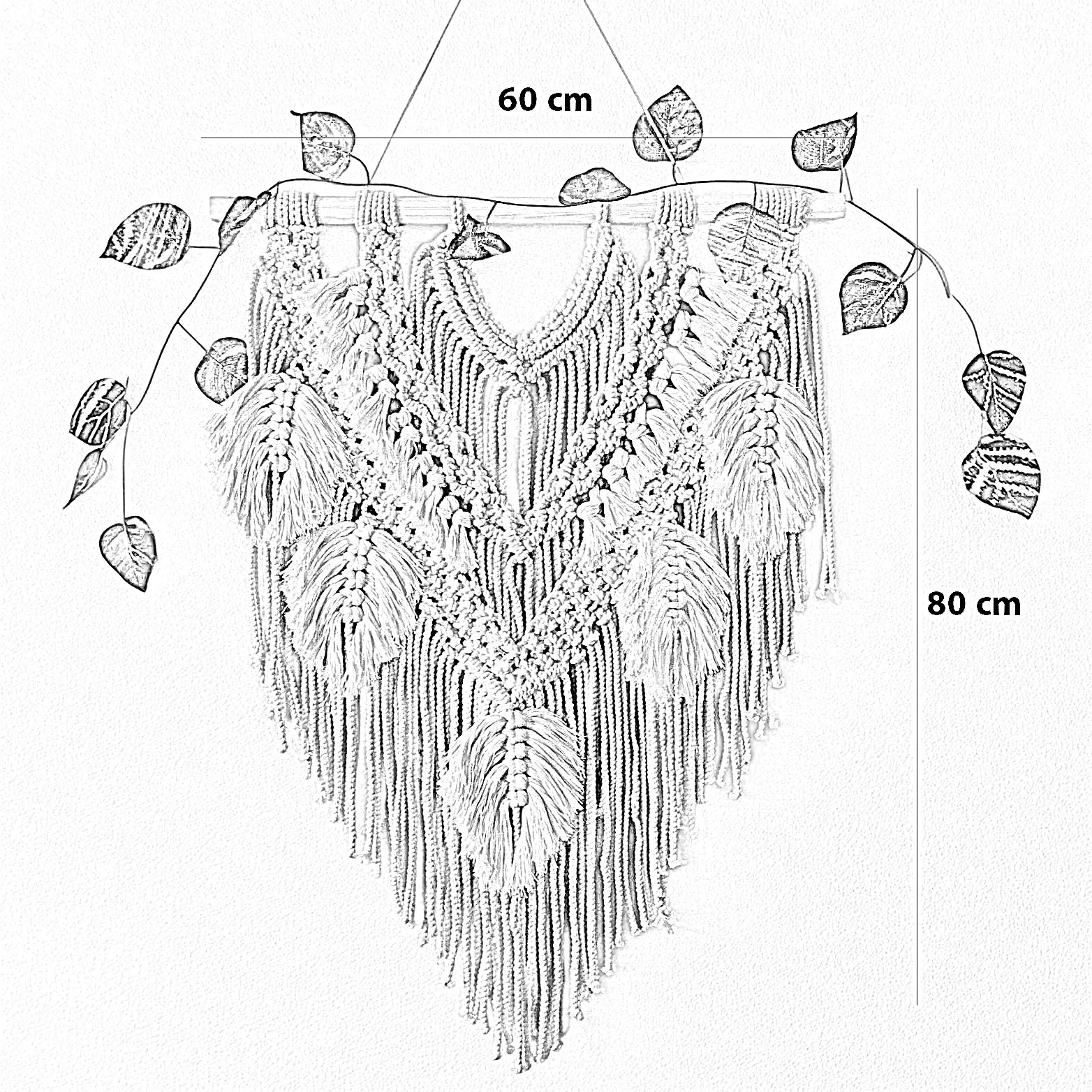 مكرمية حائط خشب طبيعي وقطن، 60*80 سم