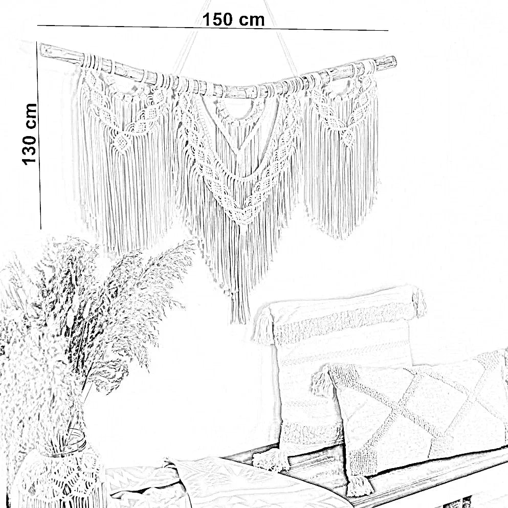 مكرمية حائط خشب، 150*130 سم