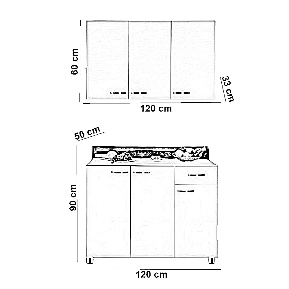 | مقاس الوحدة السفلية | العرض 120 × العمق 50 × الإرتفاع 90 سم |