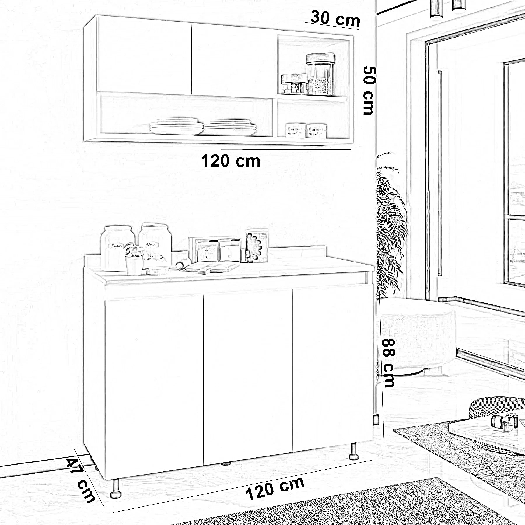 | مقاس الوحدة العلوية | العرض 120 × العمق 30 × الارتفاع 50 سم |