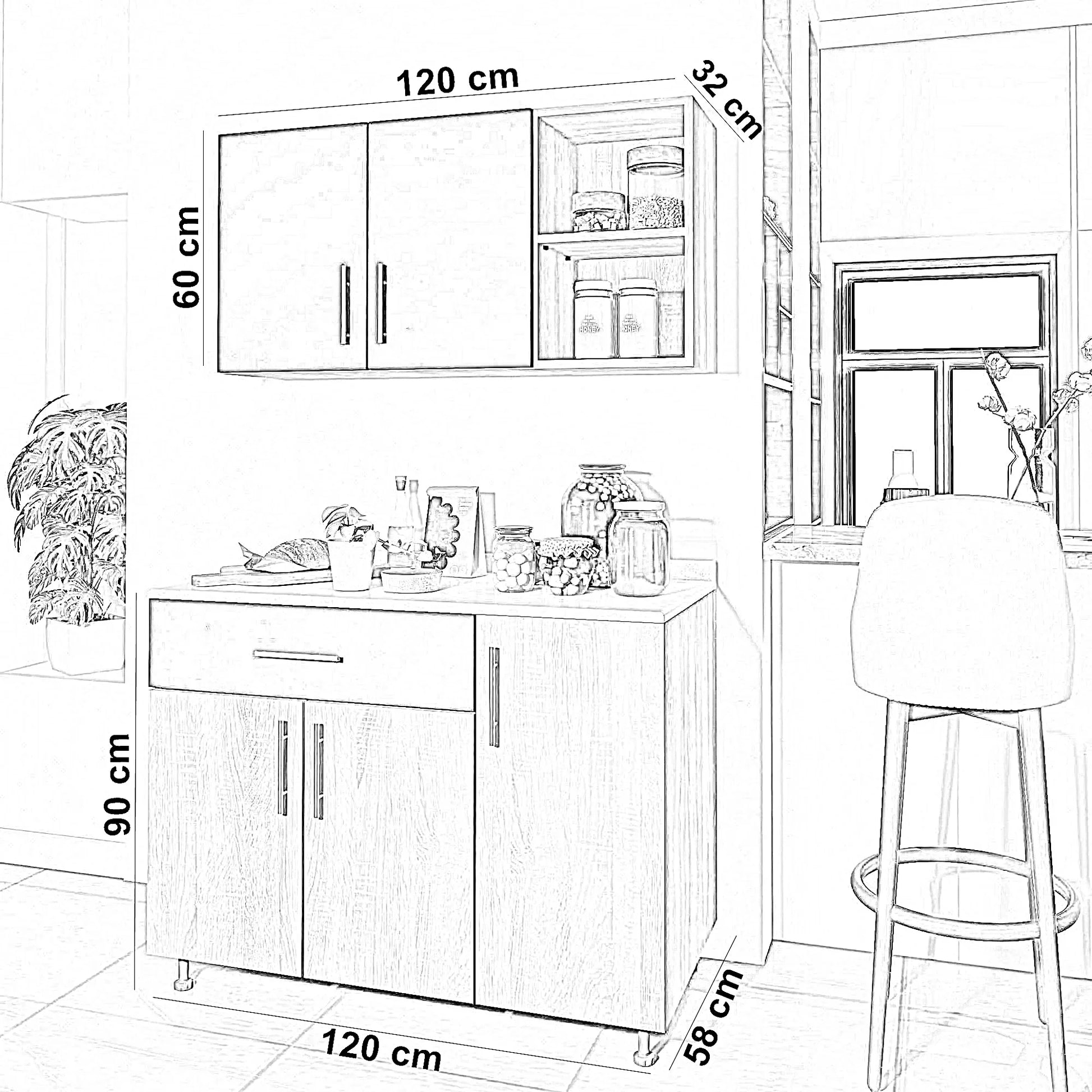 | مقاس الوحدة العلوية | العرض 120 × العمق 32 × الارتفاع 60 سم |