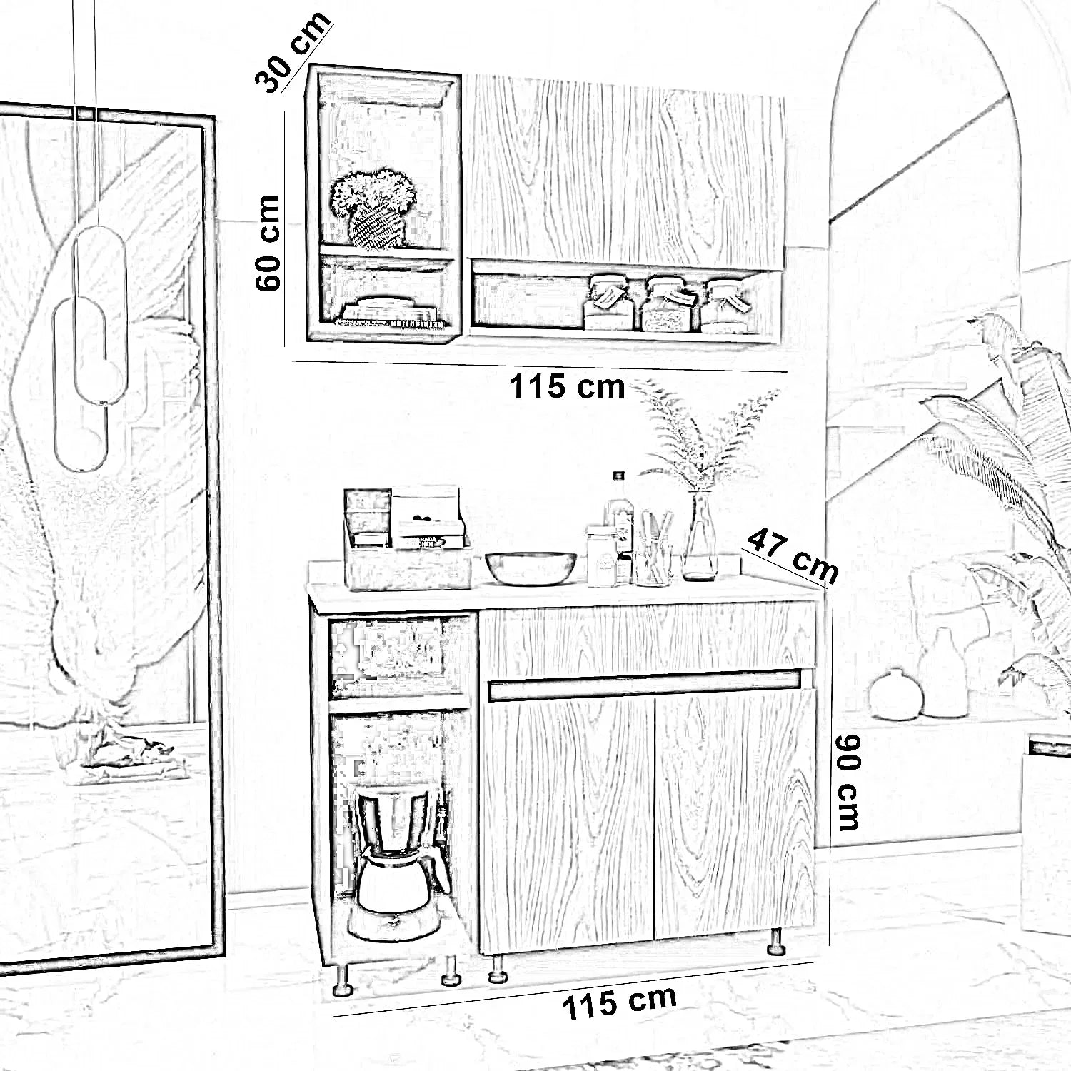 | مقاس الوحدة السفلية | العرض 115 × العمق 47 × الارتفاع 90 سم |