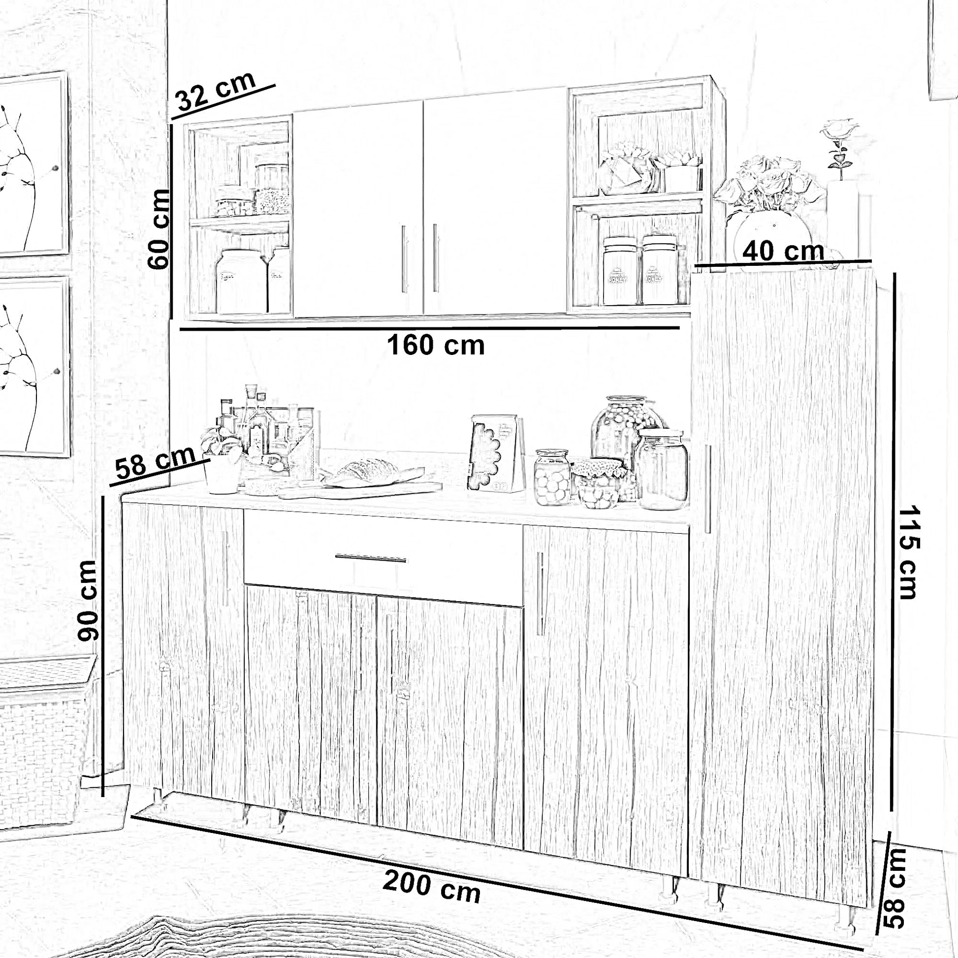 | مقاس الوحدة العلوية | العرض 160 × العمق 32 × الارتفاع 60 سم |