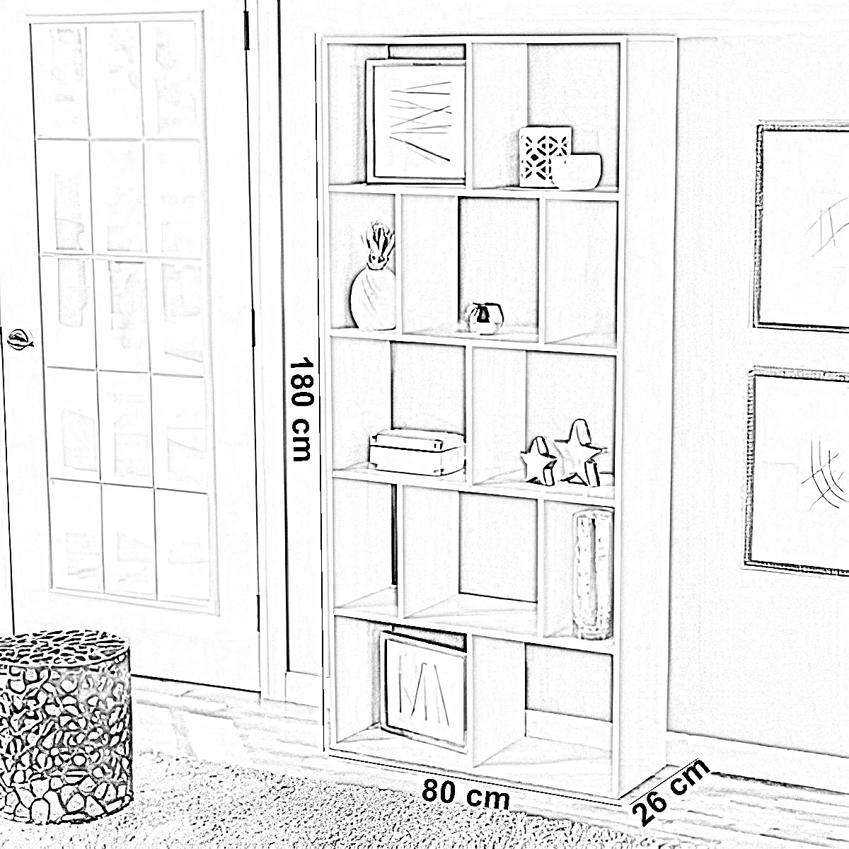 وحدة أرفف مكتبية ام دي اف، 80*26*180 سم