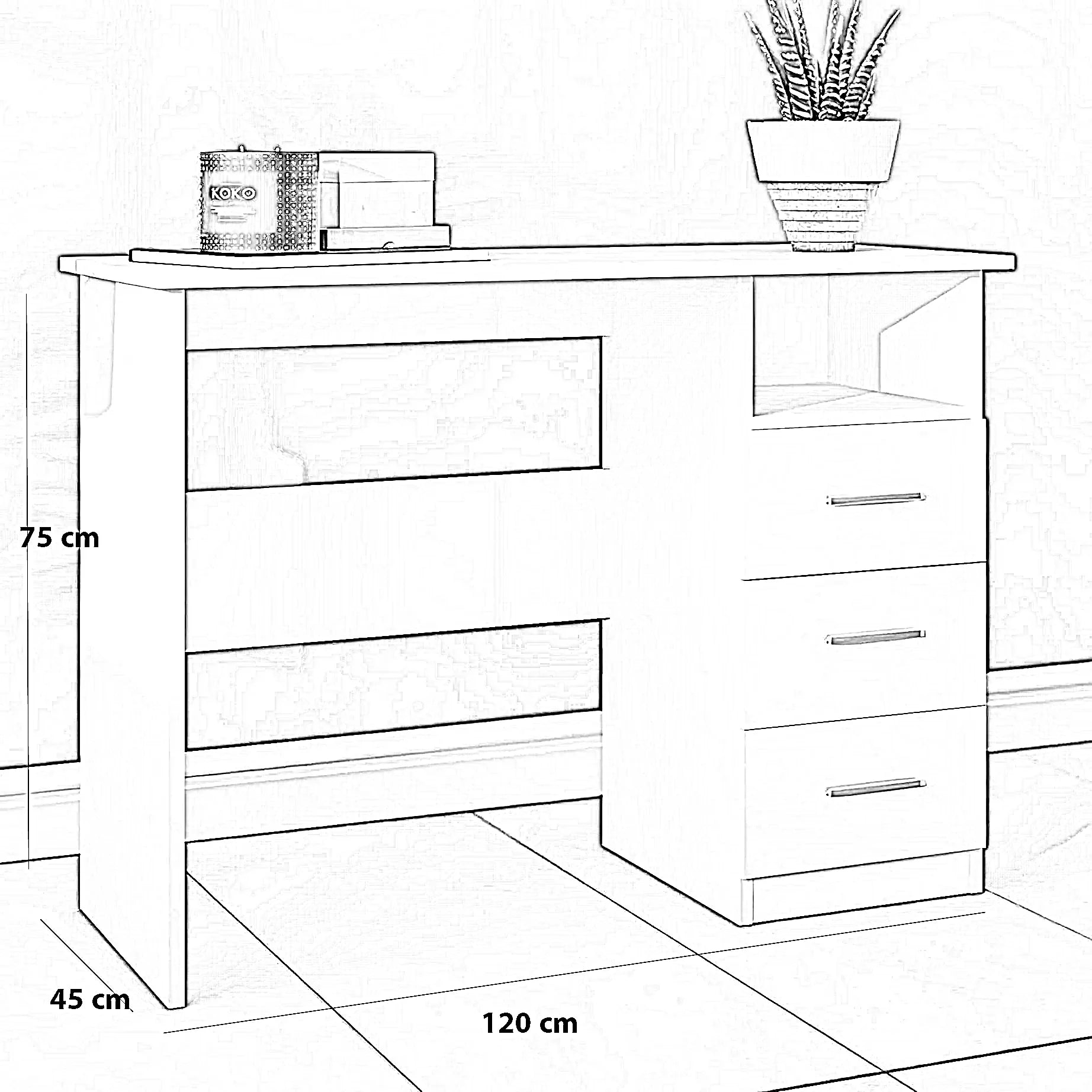 | المقاس | العرض 120 × العمق 45 ×الارتفاع 75 سم |