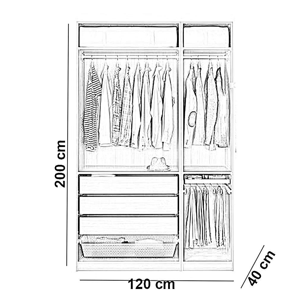 | المقاس | العرض 120 × العمق 40 × الارتفاع 200 سم |