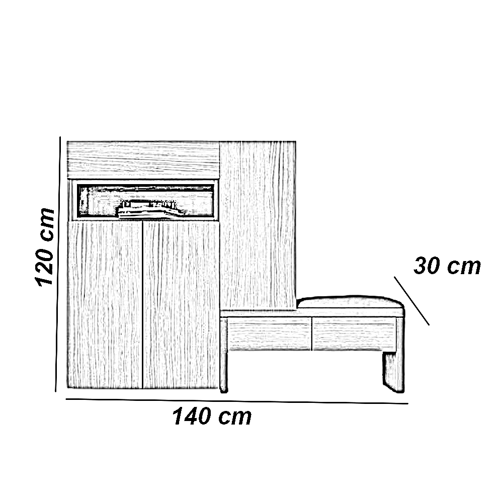 | المقاس | العرض 140 × العمق 30 × الارتفاع 120 سم |