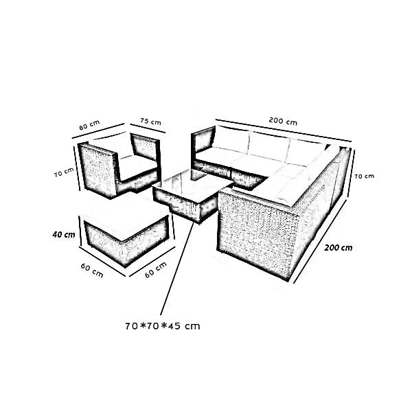 | مقاس الركنة | العرض 200 ×الطول 200 ×الارتفاع 70 سم |