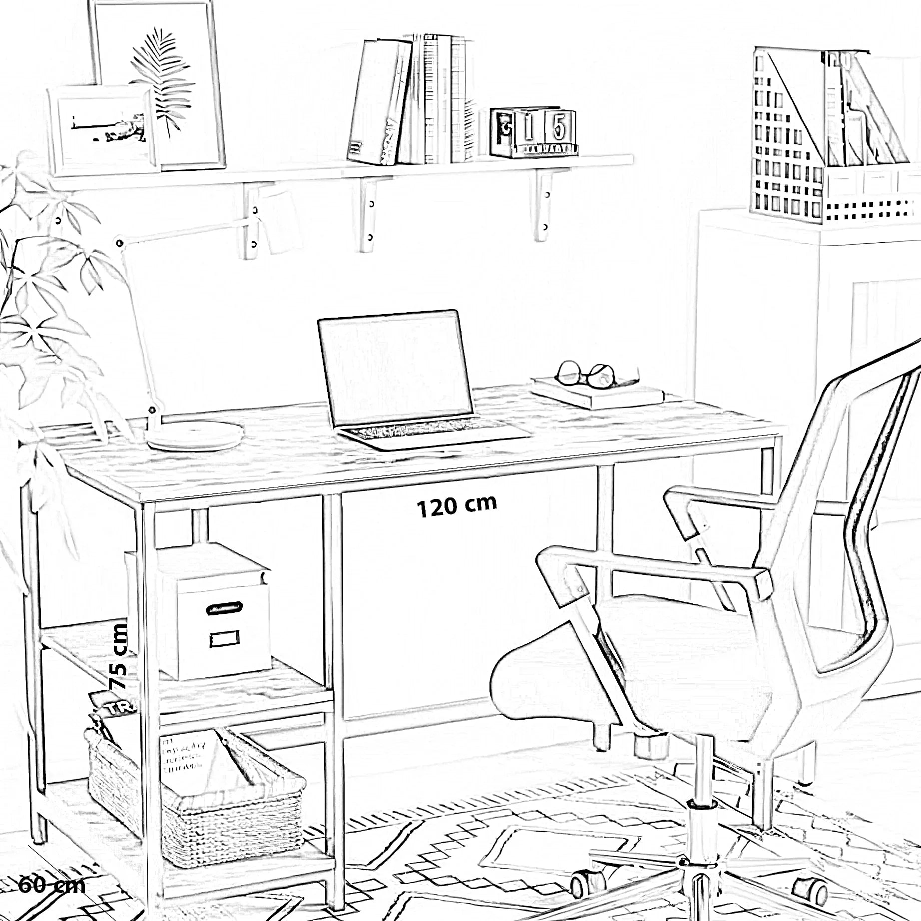 | المقاس | العرض 120 × العمق 60 ×الارتفاع 75 سم |
