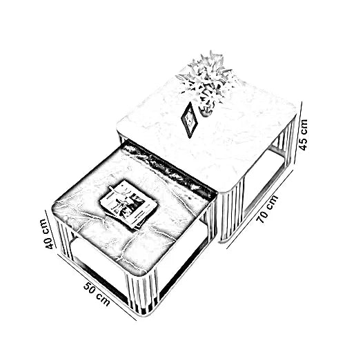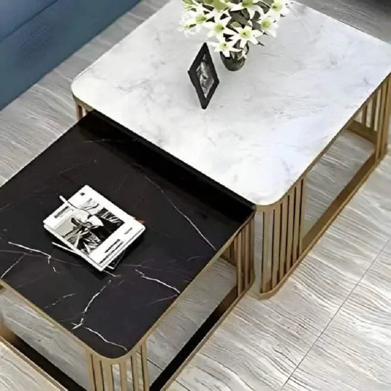 طقم ترابيزات قهوة متداخلة معدن بسطح رخام، قطعتين