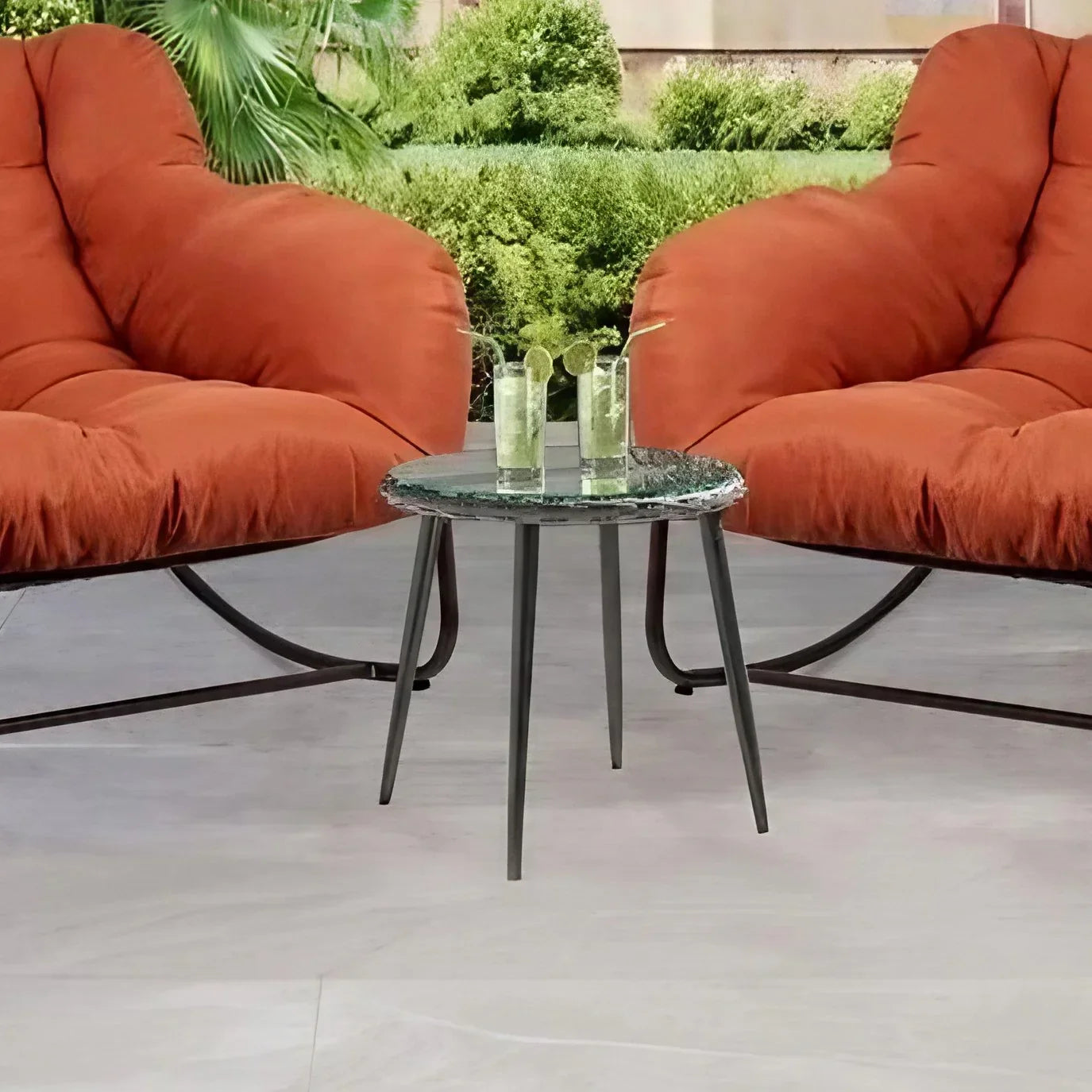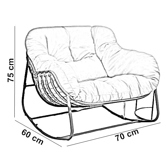 طقم كراسي هزاز خارجي مع ترابيزة خارجية ستيل وراتان، 3 قطع
