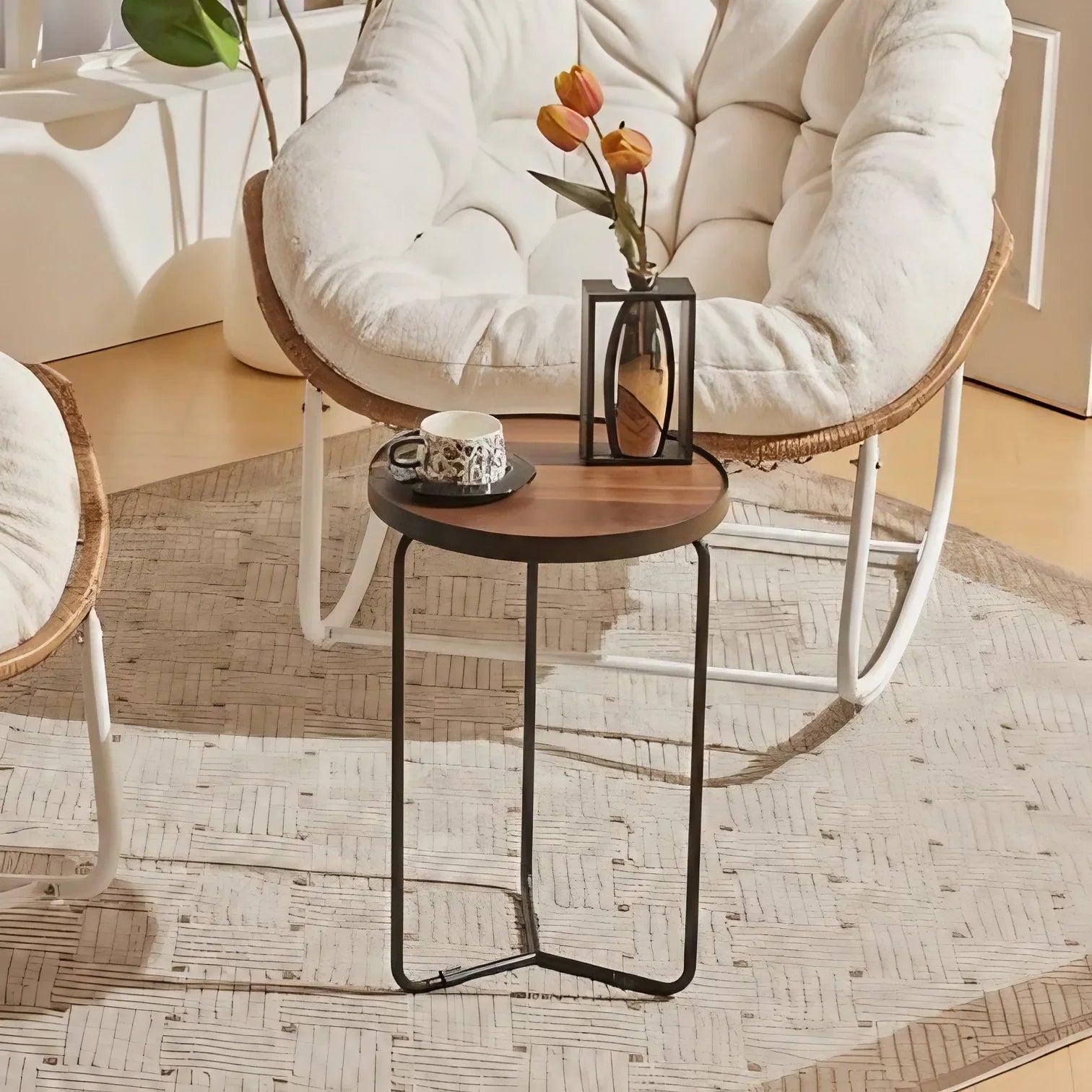 طقم كراسي هزاز خارجي مع ترابيزة خارجية ستيل وراتان، 3 قطع