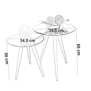 الترابيزة 1 : القطر 39.5 × الارتفاع 60 سم - الترابيزة 2 : القطر 34.5 × الارتفاع 50 سم |