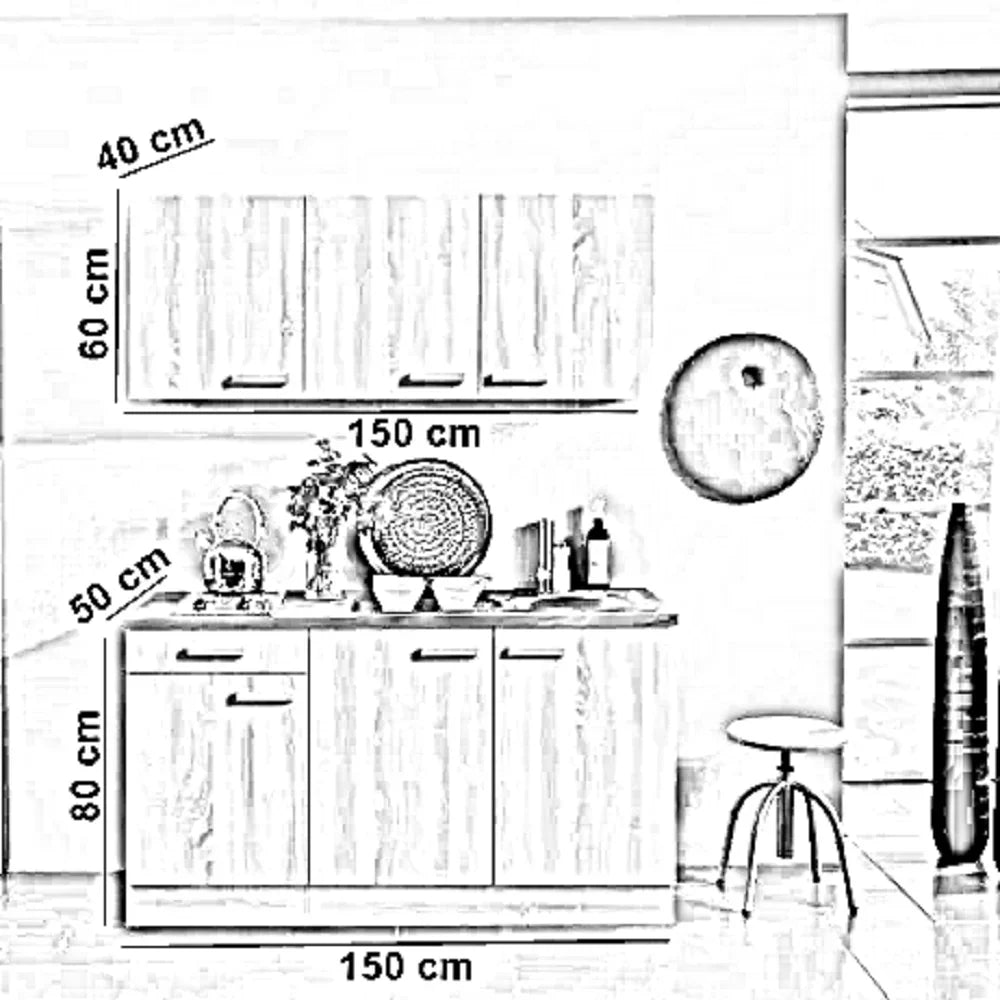 | مقاس الوحدة السفلية | العرض 150 × العمق 50 × الارتفاع 80 سم |