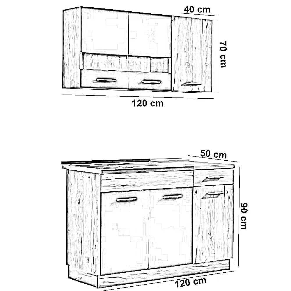 | مقاس الوحدة السفلية | العرض 120 × العمق 50 × الارتفاع 90 سم |
