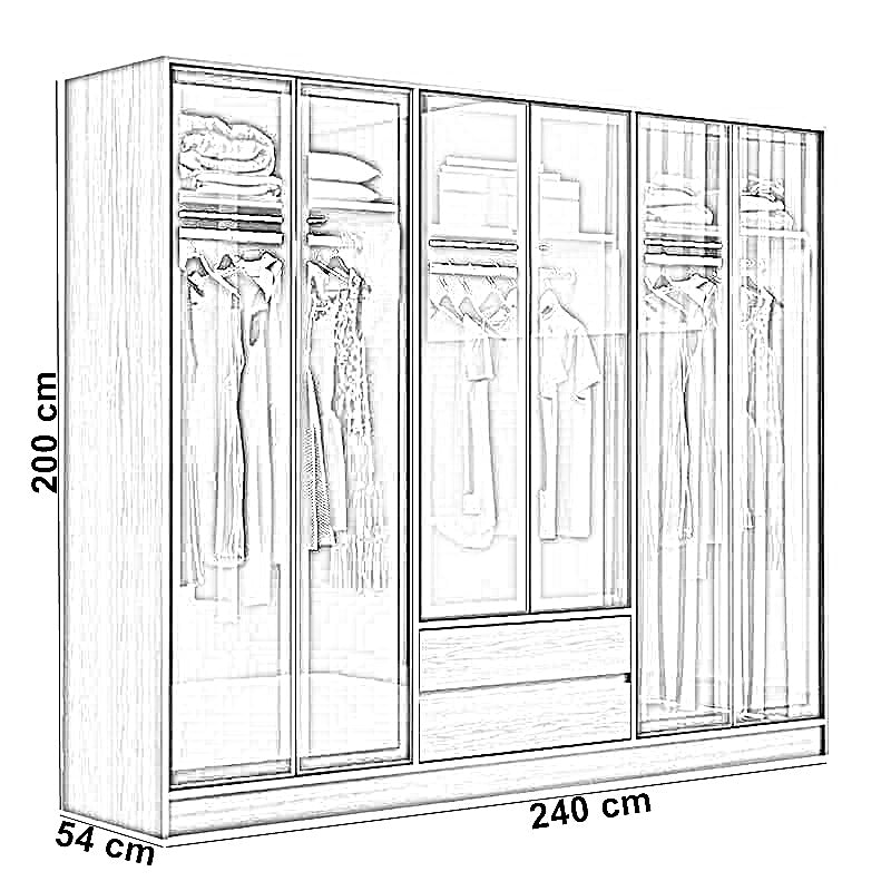 | المقاس | العرض 240 × العمق 54 × الارتفاع 200 سم |