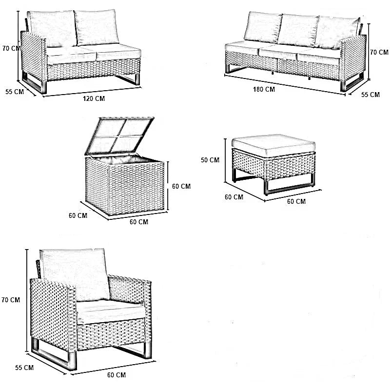 | مقاس الكنبة 1 | العرض 180 × العمق 55 × الارتفاع 70 سم |
