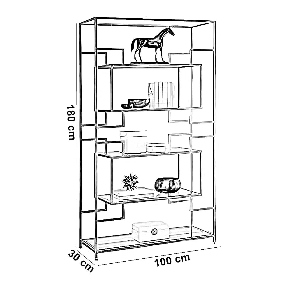 وحدة أرفف ستيل و زجاج، 100*30*180 سم