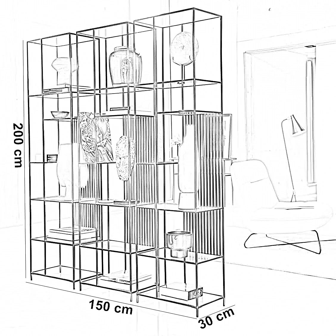 وحدة أرفف ستيل و زجاج، 150*30*200 سم - 3 قطع