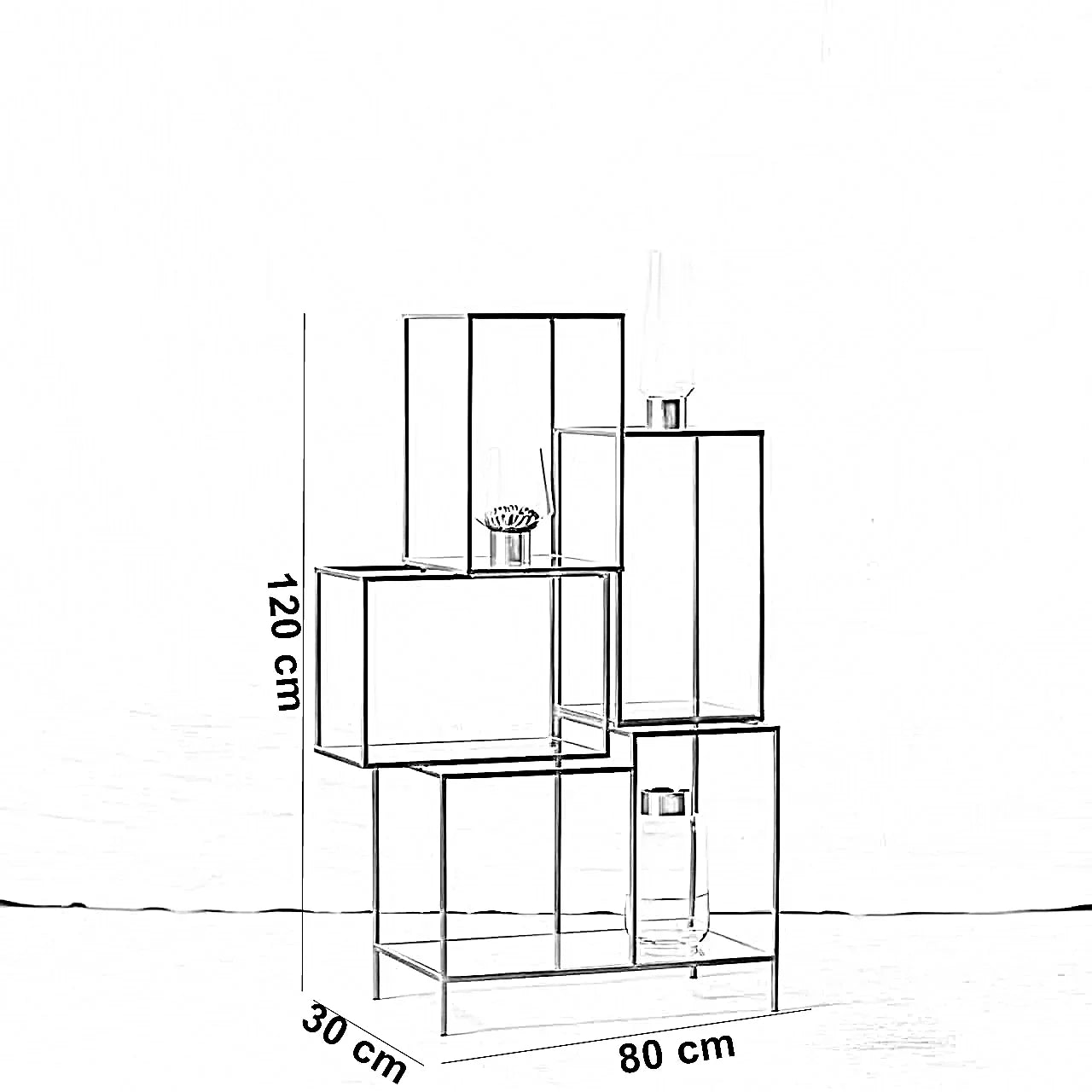 وحدة أرفف ستيل و زجاج، 80*30*140 سم