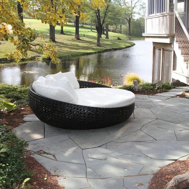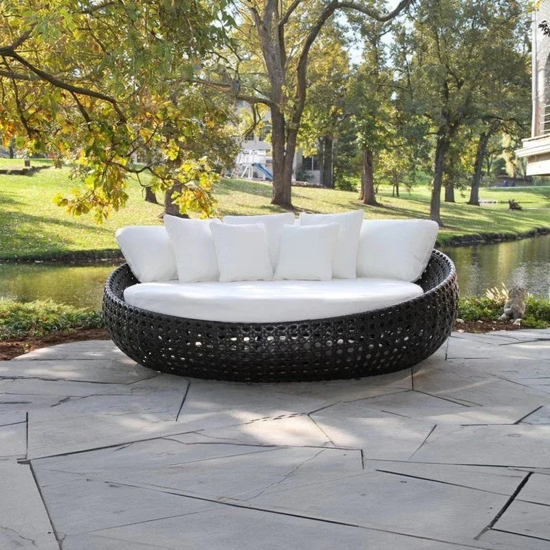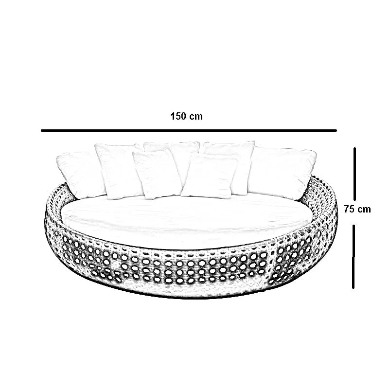 سرير خارجي ستيل و رتان، 150*150*75 سم