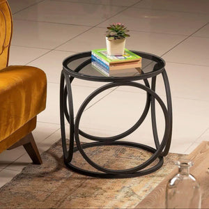 ترابيزة جانبية ستيل بسطح زجاج، 40*40*45 سم - أسود