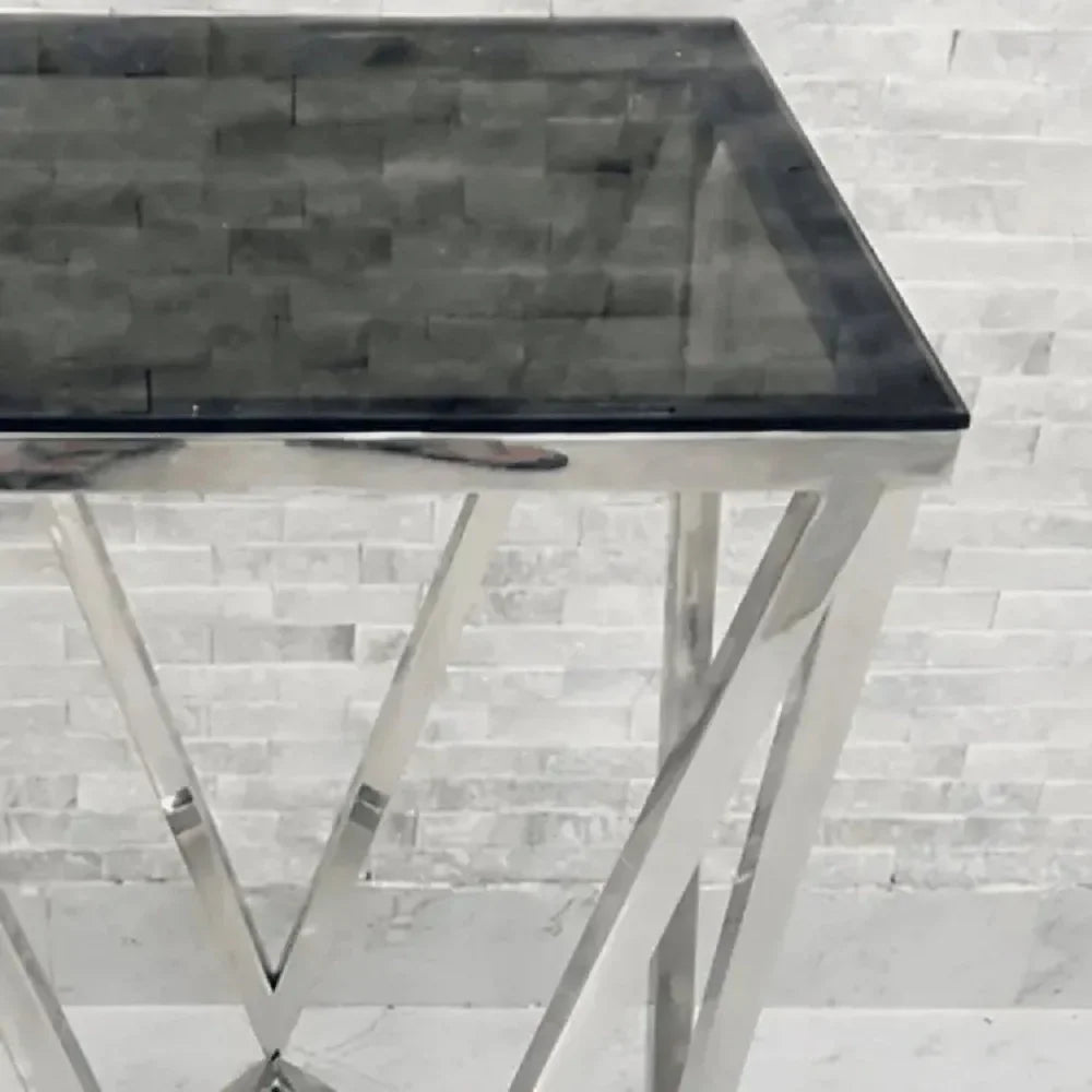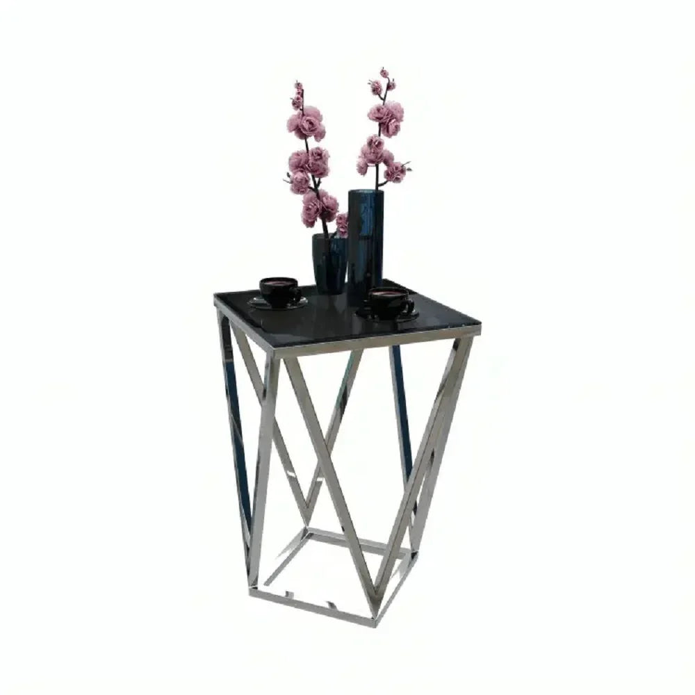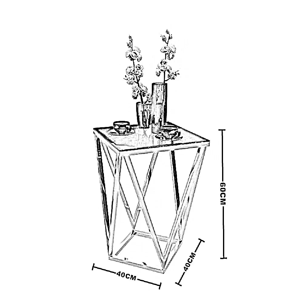 ترابيزة جانبية ستيل بسطح زجاج، 40*40*60 سم