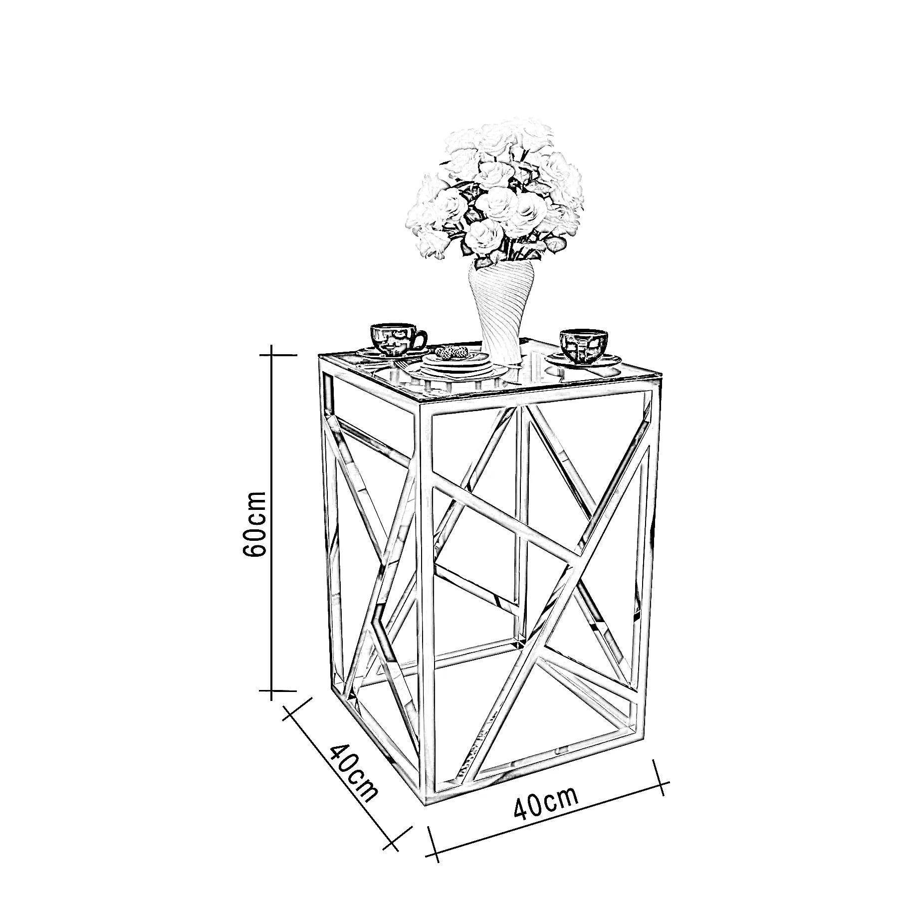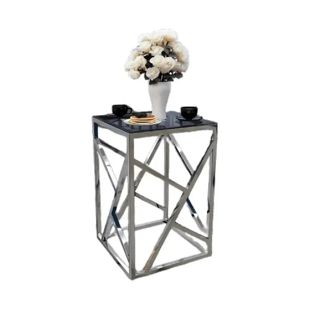 ترابيزة جانبية ستيل بسطح زجاج، 40*40*60 سم