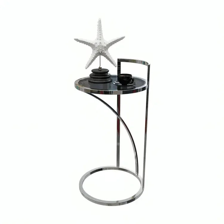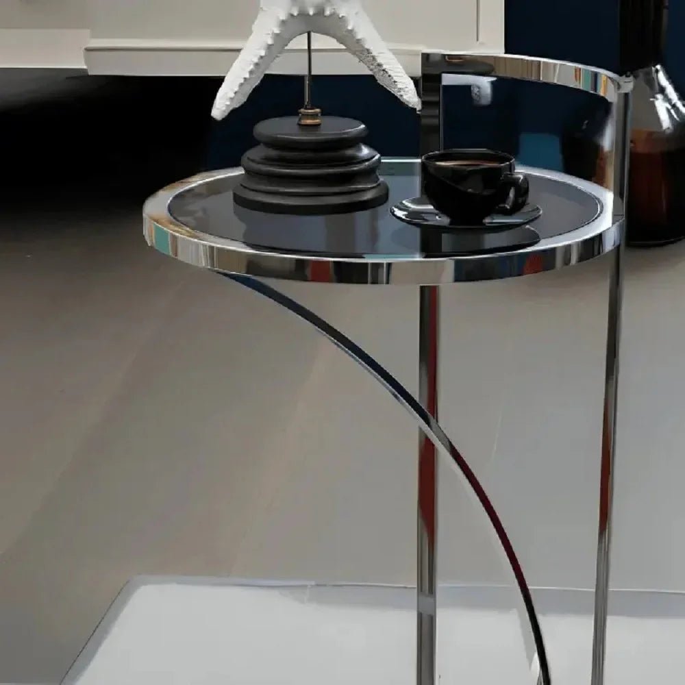 ترابيزة جانبية ستيل بسطح زجاج، 40*40*60 سم