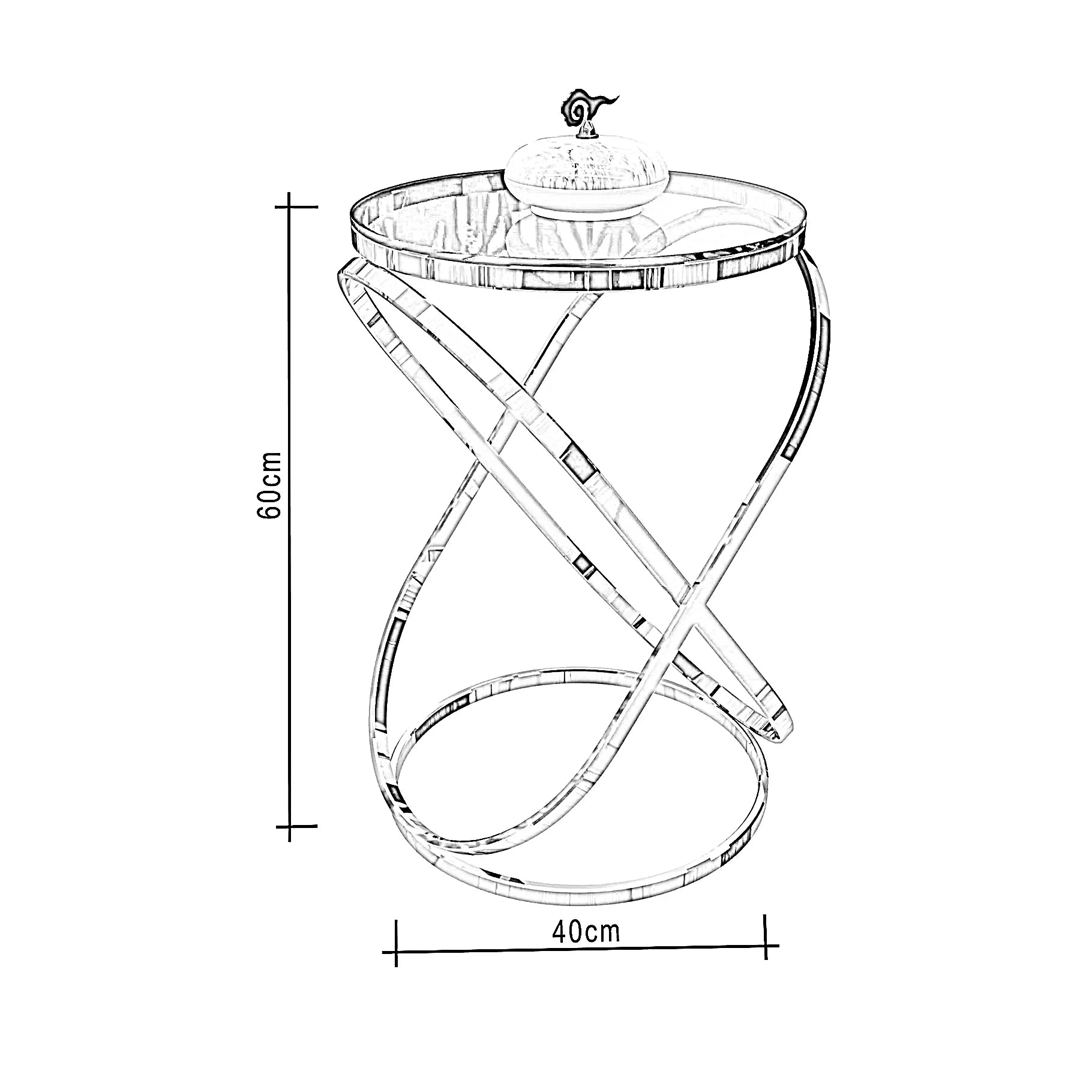 ترابيزة جانبية ستيل بسطح زجاج، 40*40*60 سم