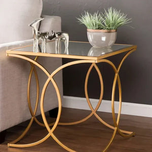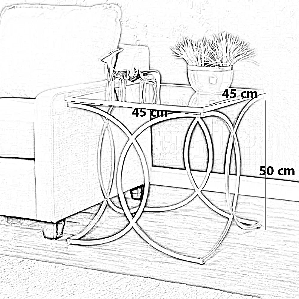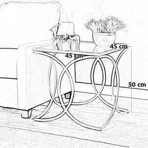 ترابيزة جانبية ستيل بسطح زجاج، 45*45*50 سم