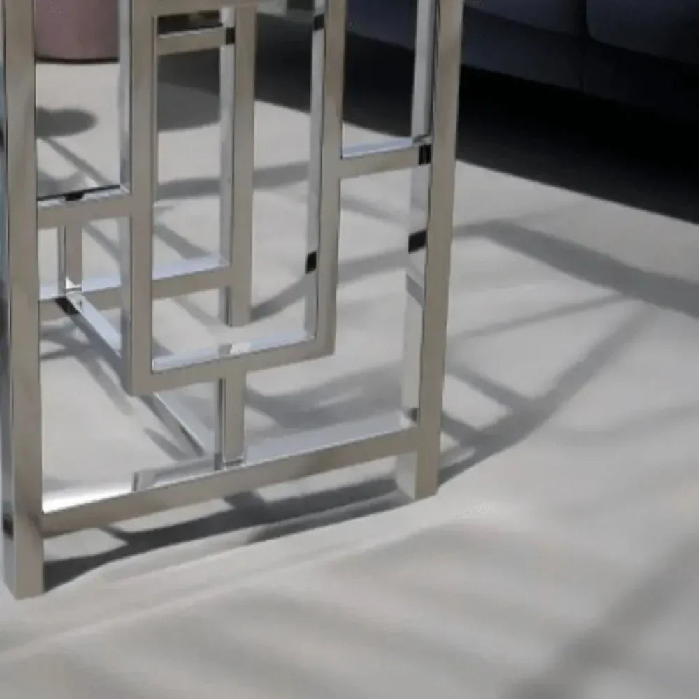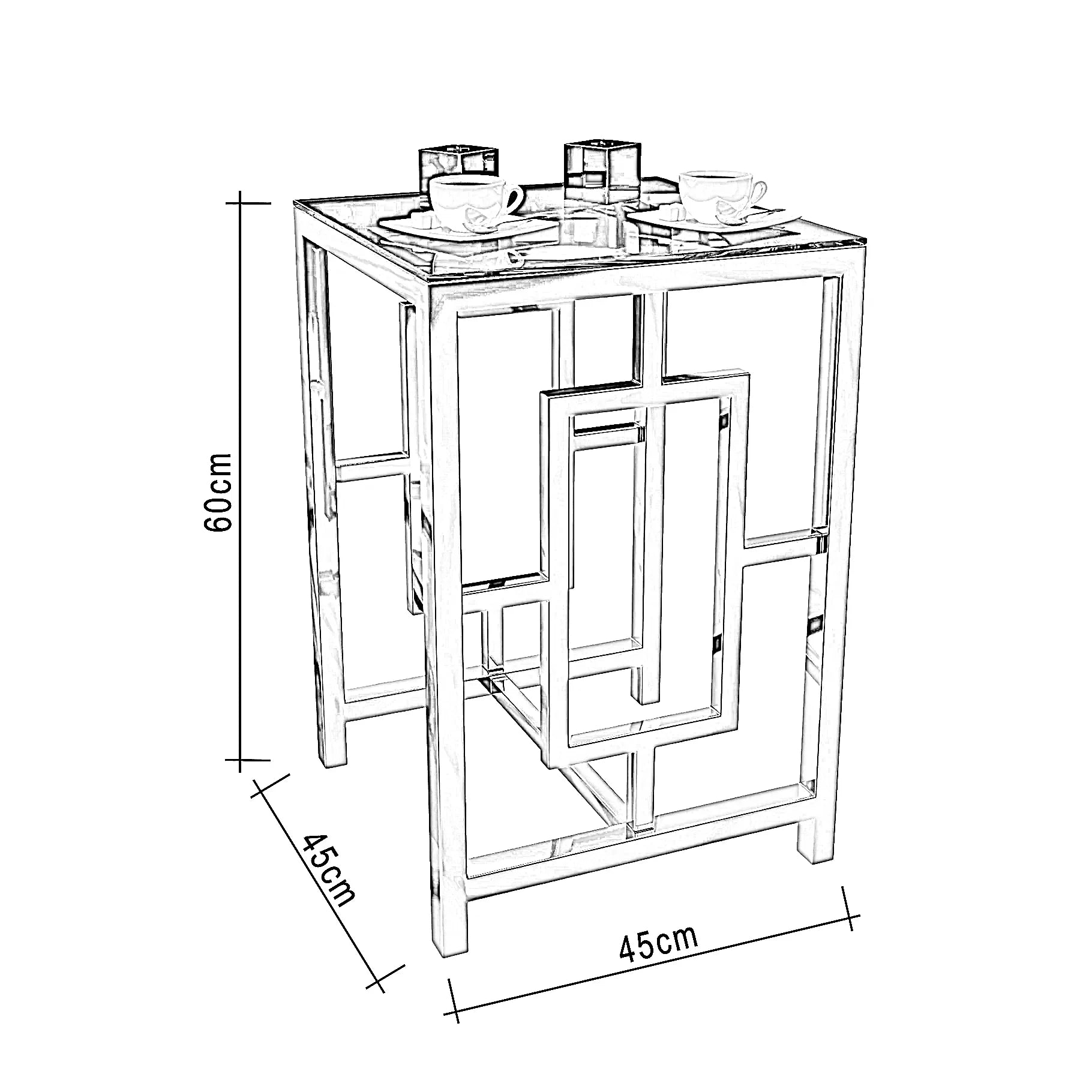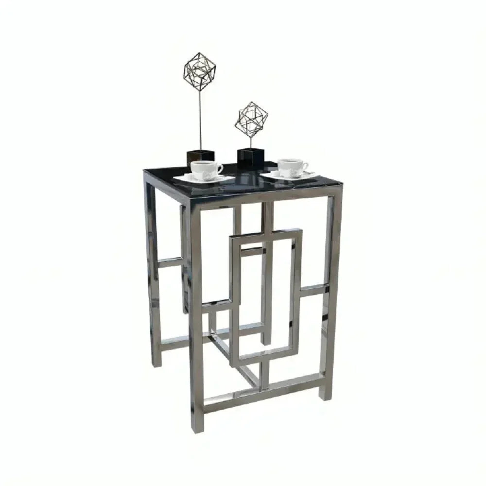 ترابيزة جانبية ستيل بسطح زجاج، 45*45*60 سم
