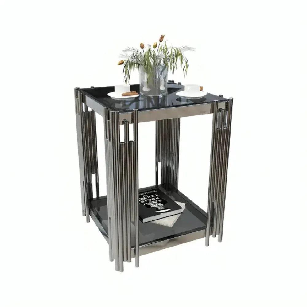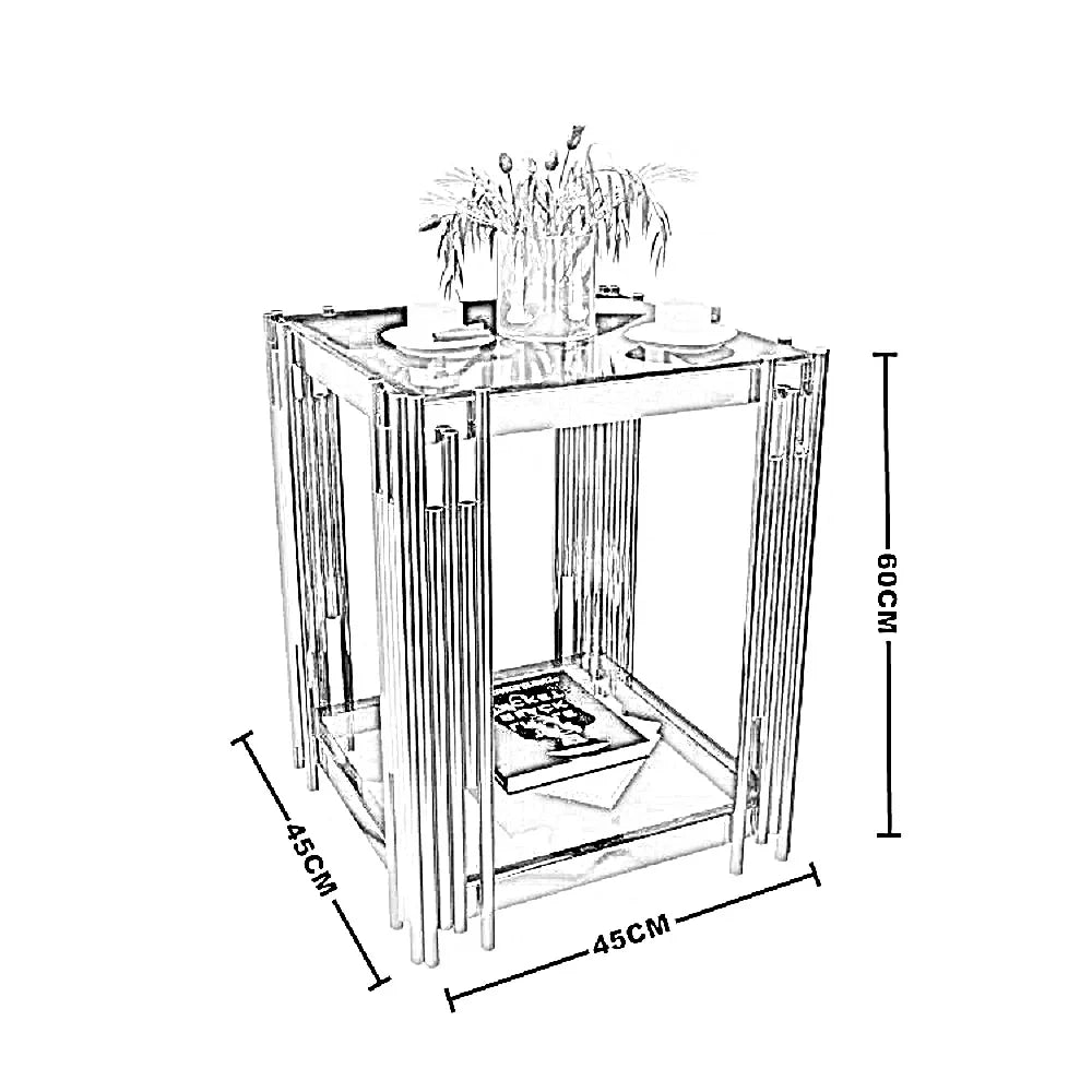 ترابيزة جانبية ستيل بسطح زجاج، 45*45*60 سم