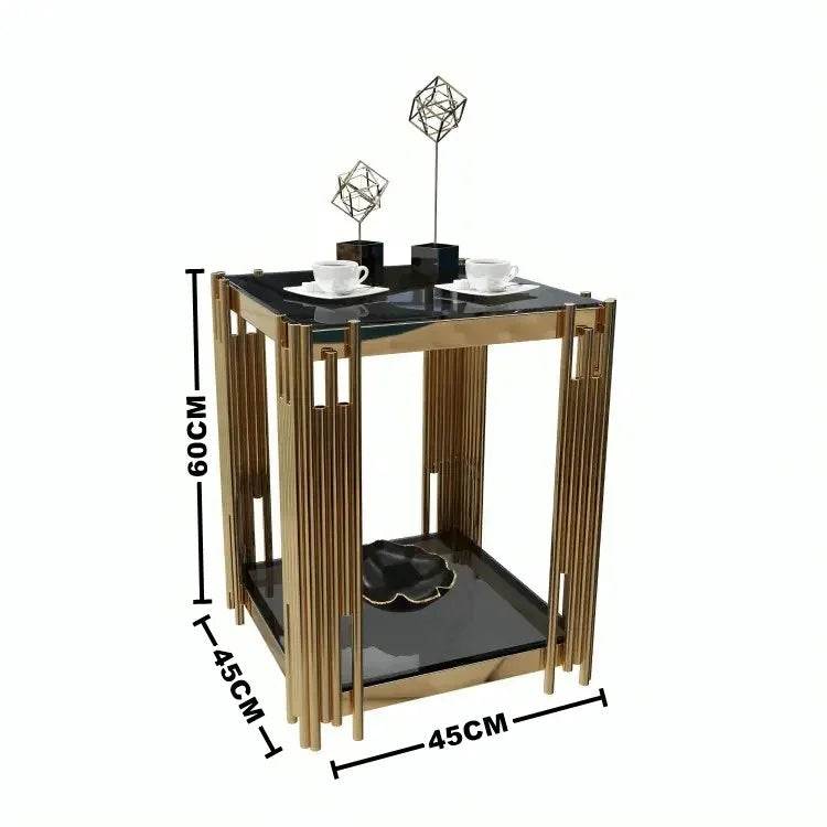 ترابيزة جانبية ستيل بسطح زجاج، 45*45*60 سم