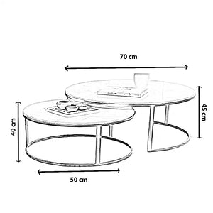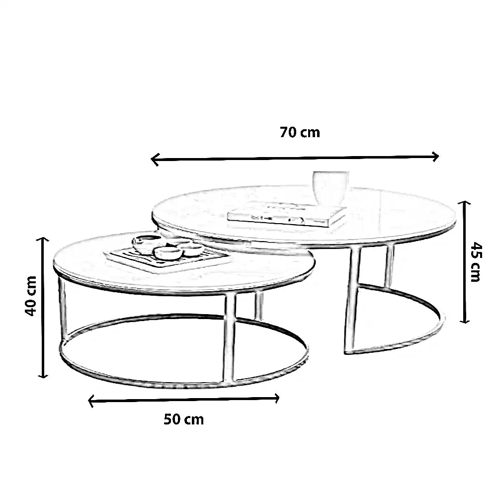 مقاس الترابيزة الكبيرة: العرض 70 ×الارتفاع45 سم - مقاس الترابيزة الصغيرة: العرض 50 ×الارتفاع40 سم |