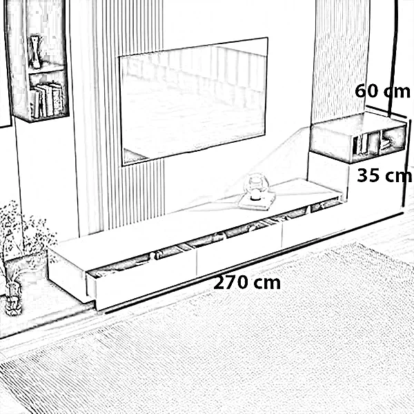 | مقاس ترابيزة التليفزيون | العرض 270 × العمق 60 × الارتفاع 35 سم |