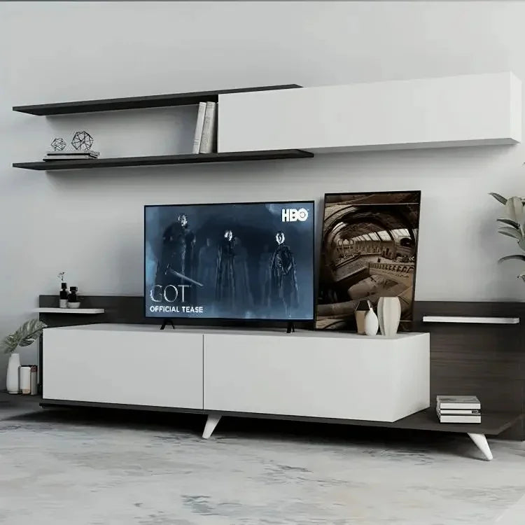 ترابيزة تليفزيون بأرفف علوية خشب ام دي اف، قطعتين